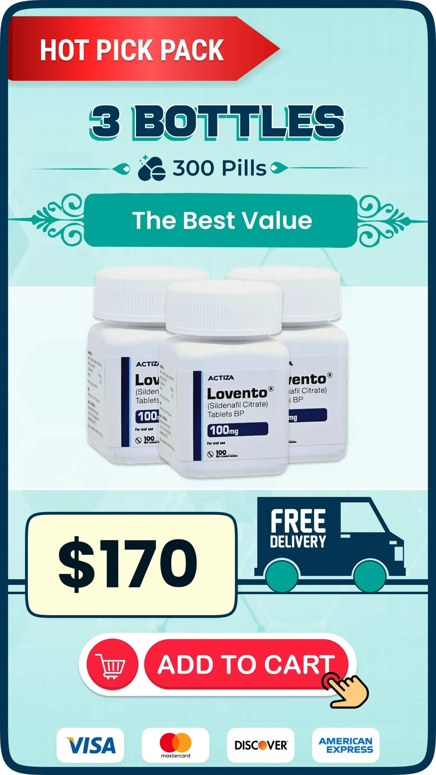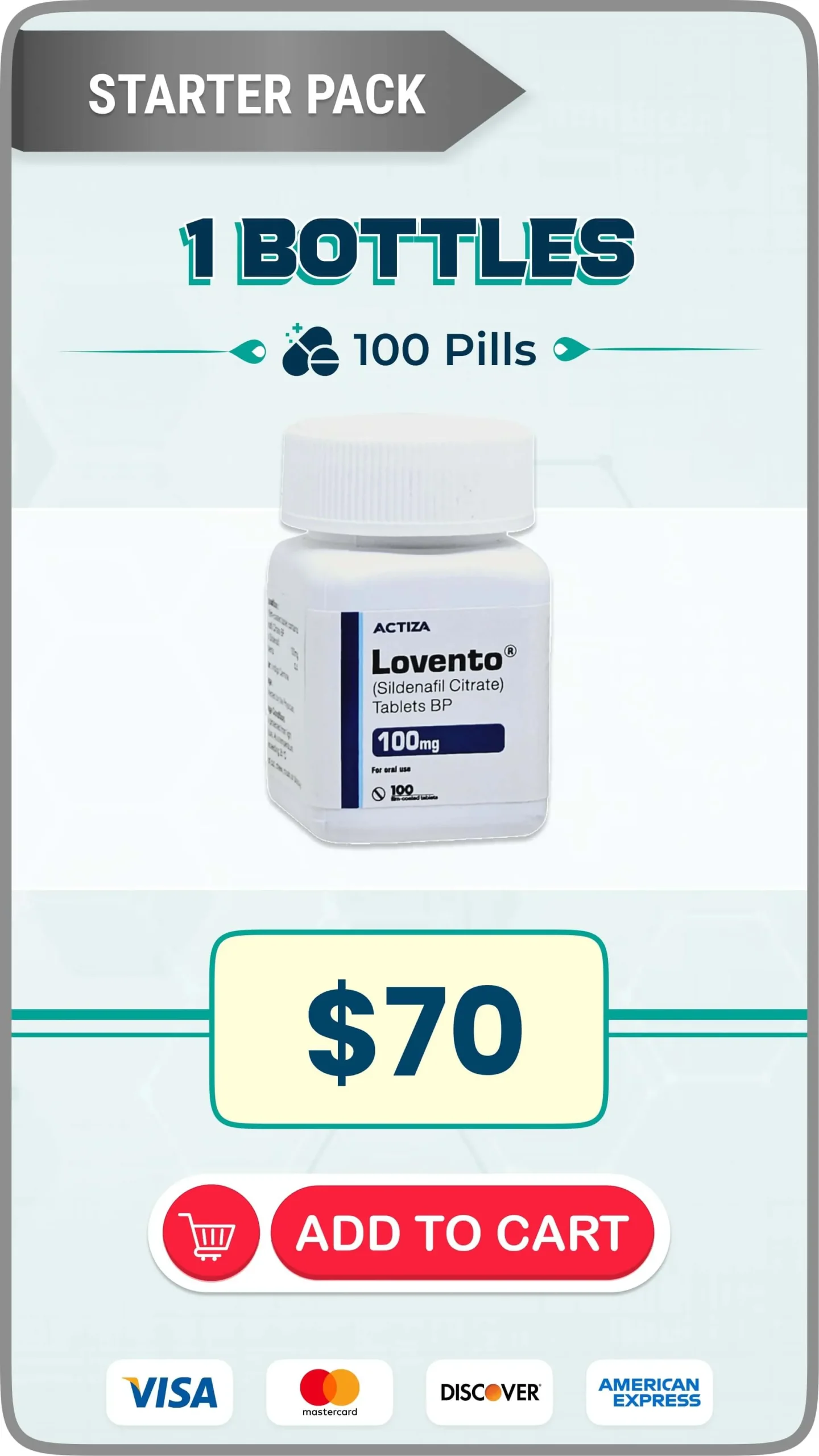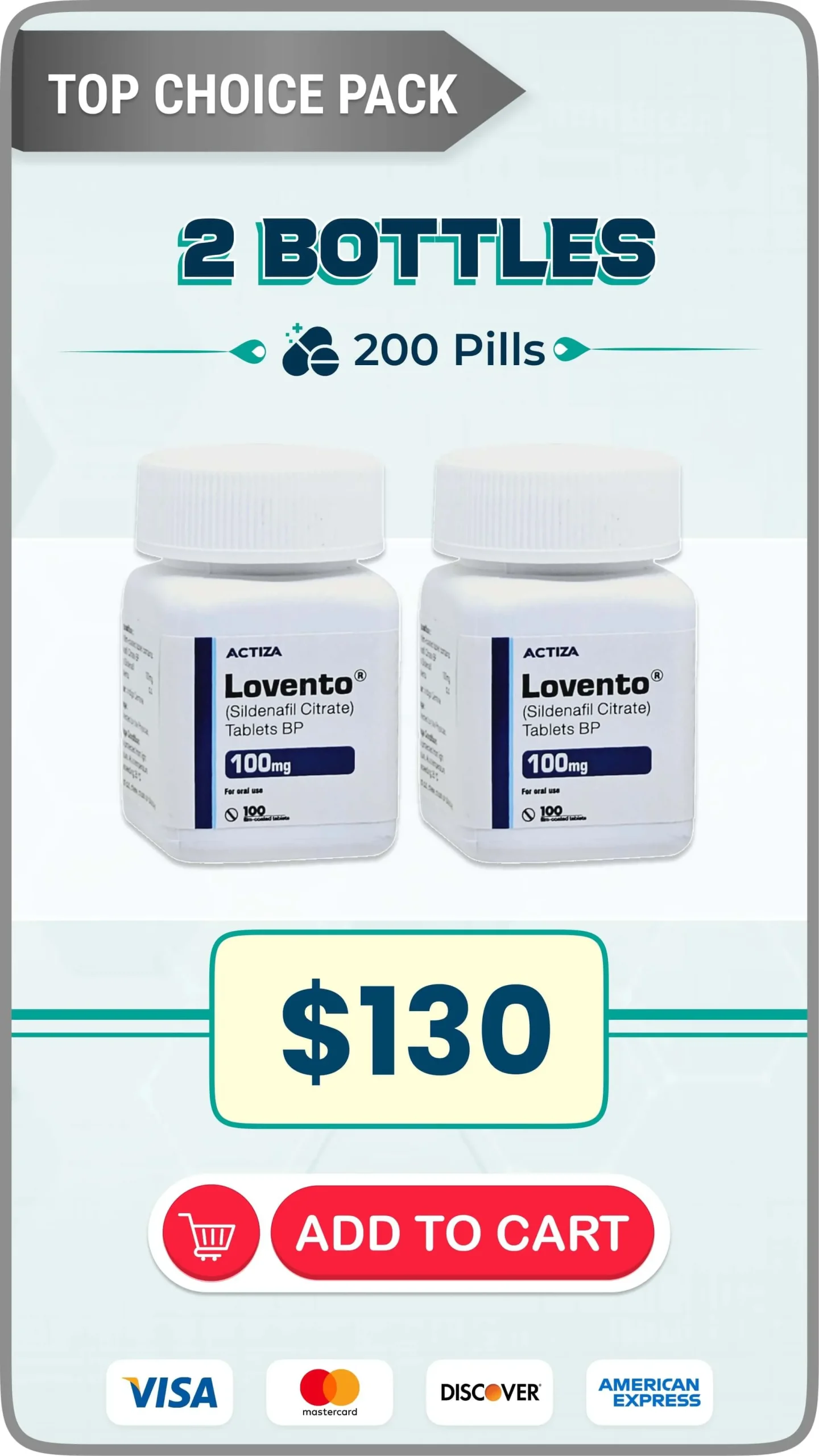 Lovento is a sildenafil-based medicine used to treat erectile dysfunction, which has become an epidemic. Lovento is a composition with sildenafil as a core element and other inactive elements that treat ED with the most efficacies compared to other options available in the market. Lovento will turn your love into the most satisfying experience in the world. It is designed to give you a firm and hard penis and an erection that lasts for hours.
